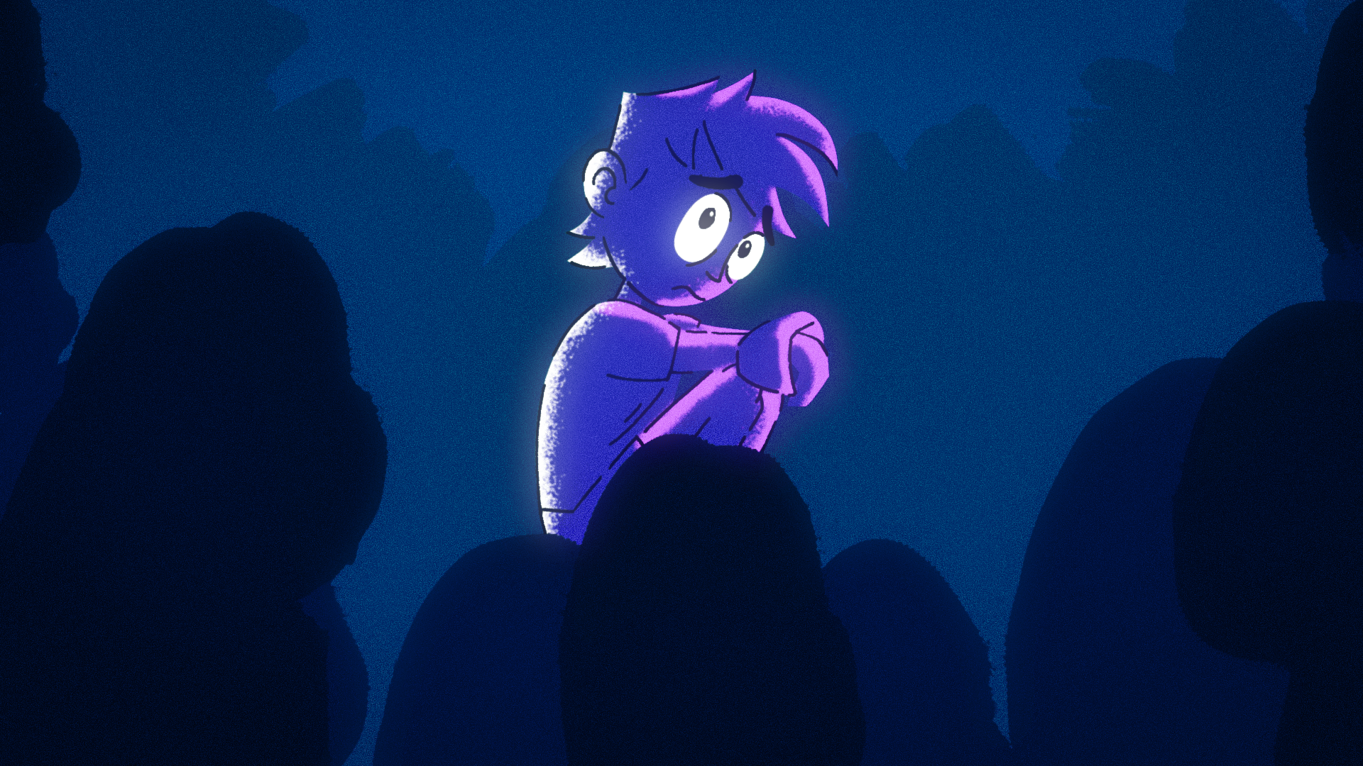 I was responsible for the second compositing part of the film. Such as color correction, adding the rimlight on the main character, basically finalizing the look of the film. Since I worked on the concept art, it was a lot easier for me to composite shots. The rimlight also got sort of symbolic meaning. It represents what is part of his life so in the beginning the main character is the only one with that rimlight, but near the end, more characters also get that rimlight.
